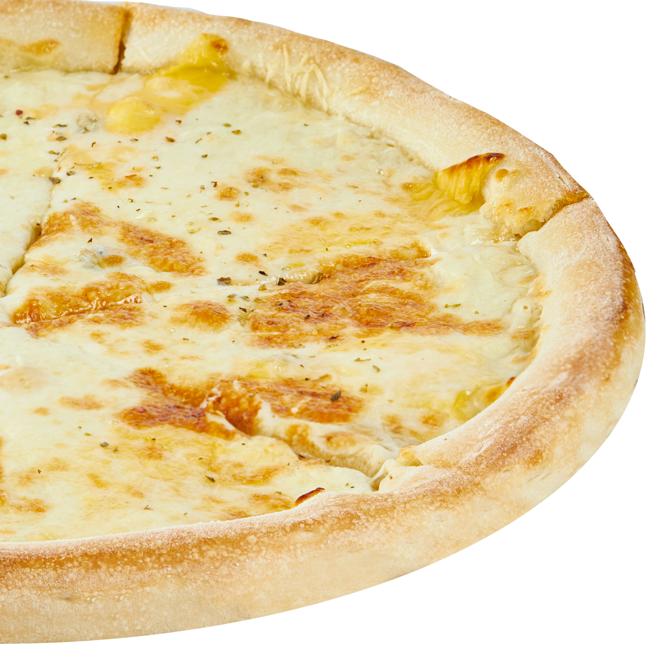 Состав: сыр Моцарелла, сыр Чеддер, сыр Пармезан, сыр Дор-Блю, сливочный соус