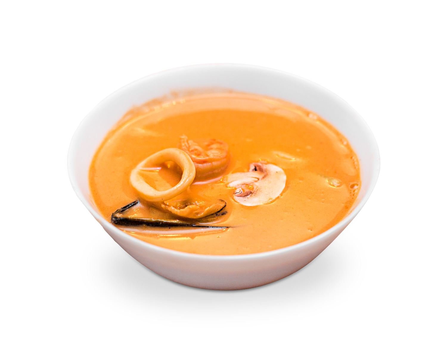 Состав: соус там ям, мидии, кальмар, креветка, грибы, кокосовое молоко