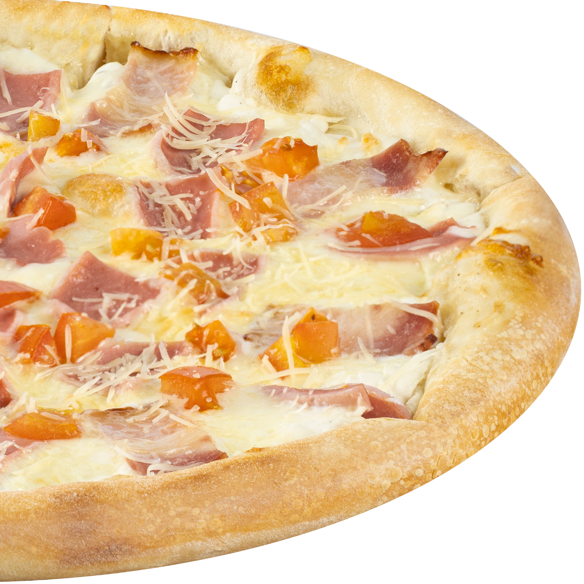 Состав: соус ранч, сыр моцарелла, ветчина, бекон, помидор, сыр пармезан