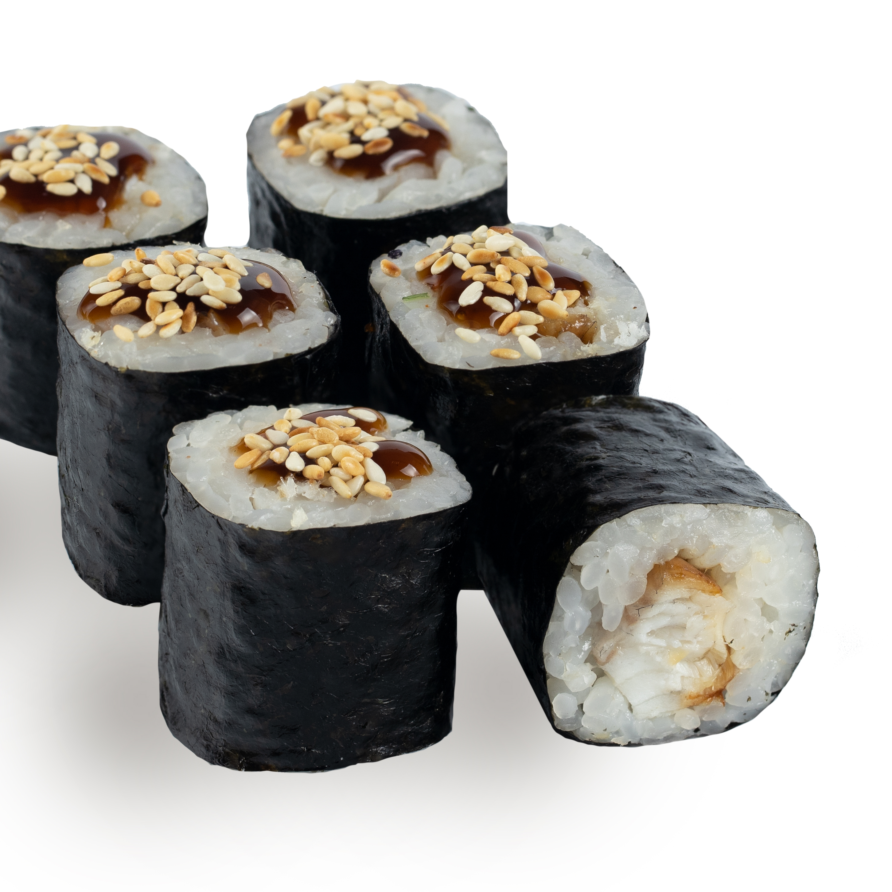 Состав: нори, рис, угорь, унаги соус, кунжут